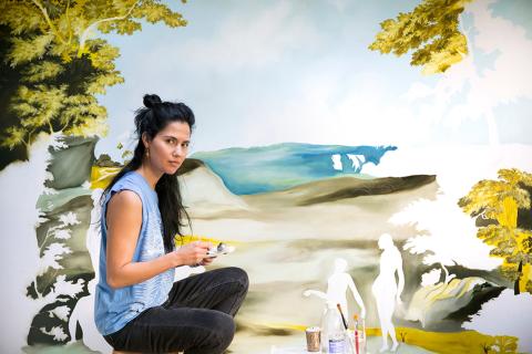 L'œuvre de Sanam Khatibi explore les notions d'animalité et les pulsions primaires que nous partageons tous. Au cœur de sa pratique se trouve une remise en question de notre relation aux structures de pouvoir et de la dualité entre triomphe et échec. Les thèmes récurrents de son œuvre sont le chaos, la destruction, l'excès, la perte de contrôle, la domination et la soumission. Khatibi s'intéresse également à la frontière ténue qui existe entre la peur et le désir, et à leur étroite interrelation. Ses sujets vivent au gré de leurs pulsions, au cœur de paysages séduisants, exotiques et dangereux. La faune et la flore font partie intégrante de sa pratique, et ses figures sont souvent représentées sur le même plan que la flore et la faune. Pouvoir, violence et sensualité se mêlent, se mélangent et se superposent de manière ambiguë, donnant naissance à des scénarios multidimensionnels qui juxtaposent l'animal et l'humain, le passé et le présent, la cruauté et la séduction. Sa pratique se compose de peintures, de broderies, de tapisseries, de sculptures et d'installations.