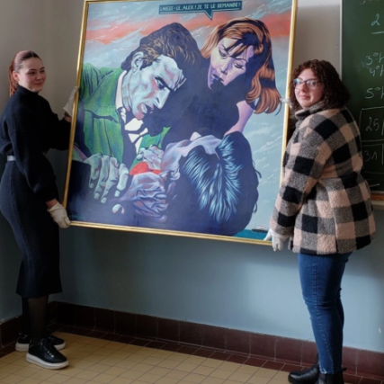 Les élèves du Lycée Provincial Hornu Colfontaine ont choisi d'accueillir en classe «Bagarre - Moment d’un photoroman», de l'artiste hainuyer Michel Jamsin.