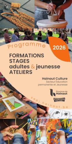 Plongez dans la programmation du Secteur Éducation permanente et Jeunesse de Hainaut Culture. Formations, stages, ateliers, expressions culturelles… Une programmation variée, accessible à tous les âges pour apprendre, créer et s’épanouir tout au long de l’année !