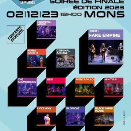 Des concerts gratuits, ce 2 décembre à 18h, lors de l’élection du groupe lauréat de L'Envol des Cités 2023, notre ambitieux programme de soutien aux artistes musicaux en Province de Hainaut !