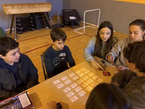 L’ensemble des élèves sont aussi passés par d’autres animations autour du jeu d’associations d’idées « Code Names », ou encore un jeu avec des cartes que nous explique une autre animatrice : « On a des cartes avec des thèmes comme animaux, matière, film, … Par exemple si c’est le mot « couleur », l’élève choisit « rose » et l’autre doit trouver cette couleur. Ça permet de mieux découvrir son parrain, sa marraine ou son filleul ».