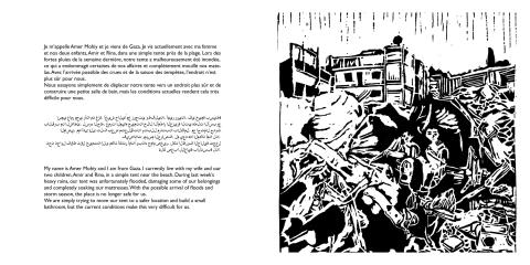 "Cette semaine, nous avons entériné la collaboration avec notre premier partenaire étranger. C'est la Palestine qui nous permet d'entamer la confection d'une nouvelle série de livres. Celui-ci regroupera les témoignages de Amer Mohiy et de ses enfants à Gaza. Ceux-ci seront accompagnés de linogravures originales réalisées par les élèves de quatrième année section "Arts". Le titre : "Les Jardins de Pierres".