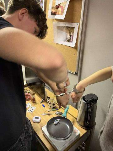 «On a recréé une cellule de prison sous forme d’expérience immersive : aucun confort, du vrai mobilier de la prison de Mons et une promiscuité dérangeante pour vous plonger dans la peau de détenus, menottés les uns aux autres", explique Gil Colmant, animateur à Picardie Laïque. Les élèves étaient tenus de trouver des indices pour sortir de cellule.