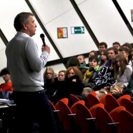 Les élèves de l'Ecole du Futur de Mons et les élèves de l'IESPP ont reçu la visite de Joris Brabant. Il est venu plaider la cause de son beau-frère, Olivier Vandecasteele, travailleur humanitaire actuellement retenu prisonnier par le gouvernement iranien.