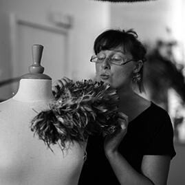 Parmi les 52 artisans exposés, voici Emmanuelle BEDUNEAU, plumassière à Ham-sur-Heure. Diplômée d’un Master en Design Textile (La Cambre), Emmanuelle Béduneau a poursuivi sa formation auprès de maîtres plumassiers, notamment Dominique Pilliard et la Maison Lemarié (Paris).