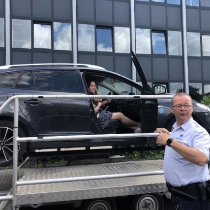 Pour terminer la séance, les étudiant.e.s ont pu vivre une expérience marquante grâce à la voiture « tonneau », leur permettant de mieux comprendre les conséquences réelles d'un accident.
