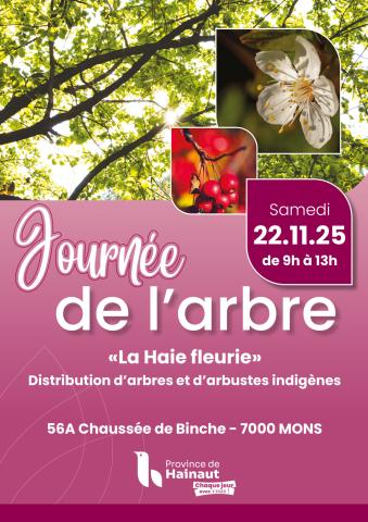 Infos : La distribution d’arbres se déroulera ce samedi 22 novembre 2026 de 9h à 12h à l’IPES Tournai, Boulevard Léopold 92b.