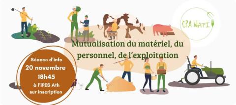 Cette soirée d’information, organisée par le Conseil de Politique Alimentaire de la Wallonie picarde (CPA Wapi), propose de découvrir des solutions concrètes et locales pour partager du matériel, du personnel ou même une exploitation.