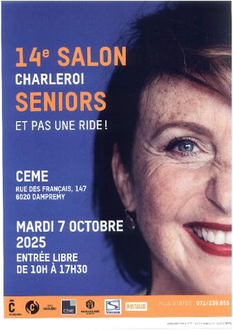 Une personne sur trois aura plus de 65 ans en 2025 ! Pour anticiper cette nouvelle vie de seniors actifs, le « Salon Charleroi Seniors », organisé par le CEME, la Ville de Charleroi et le CPAS de Charleroi, vous donne rendez-vous pour une quatorzième édition le mardi 7 octobre 2025 au CEME de DAMPREMY avec, au programme, pas mal de nouveautés !