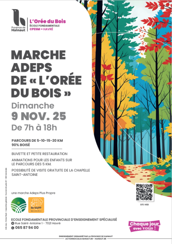 Infos : départ de l’École Fondamentale Provinciale d’Enseignement Spécialisé, rue Saint-Antoine 1 à Havré, 065 87 94 00., https://actionsociale.hainaut.be/marche-adeps-a-havre-rendez-vous-a-loree-du-bois-le-9-novembre-2025/