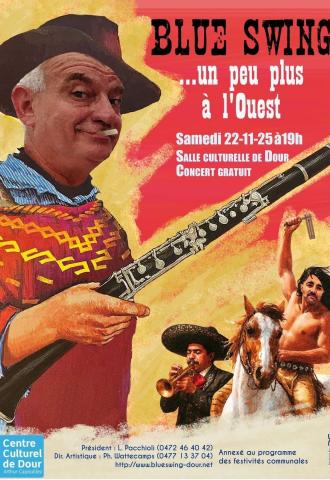 Infos : salle culturelle de Dour, rue du marché 1 à Dour, 0472/46 40 42, info@centrecultureldour.be, https://centrecultureldour.be/programme/blue-swing-2025/
