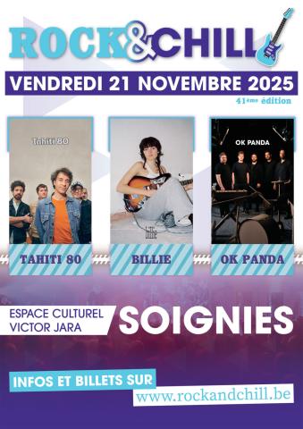 Le Centre culturel de Soignies vous offre 2 x 2 entrées! Pour en obtenir deux, envoyez un mail à nadine.konvalinka@hainaut.be en notant uniquement Rock and Chill en objet du mail. Donnez vos coordonnées (adresse, tél et mail) dans le corps du mail (sans coordonnées, votre participation ne sera pas prise en compte). Tirage au sort lundi matin. Seuls les gagnants seront avertis.