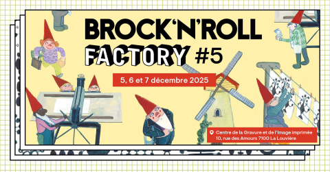 Brock’n’Roll FACTORY est une co-organisation de Brock’n’Roll ASBL et du Centre de la Gravure et de l’Image imprimée avec l’aide de la Ville de La Louvière.