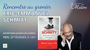 La Librairie Molière vous convie à une rencontre littéraire d'exception. Le vendredi 27 février à 18h, le Grenier de Molière vibrera au rythme des mots d'un conteur hors pair : Éric-Emmanuel Schmitt.