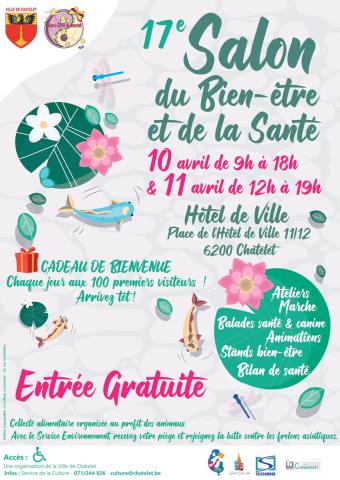 Informations et inscriptions auprès du Service de la Culture, Hôtel de Ville, Place de l’Hôtel de Ville à Châtelet, 071/244 926, culture@chatelet.be, https://www.chatelet.be/agenda/salon-du-bien-etre-et-de-la-sante?u=4e54b9c285ac448faed75435f9891c36