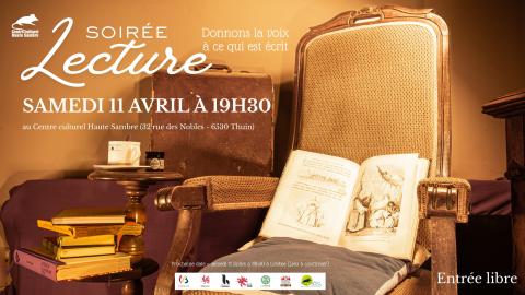Infos : rue des Nobles, 32 à 6530 Thuin, : Samuël Dionkre au 071/59.71.06 , samuel.dionkre@cchautesambre.be, https://www.centreculturelhautesambre.be/event/soiree-lecture/