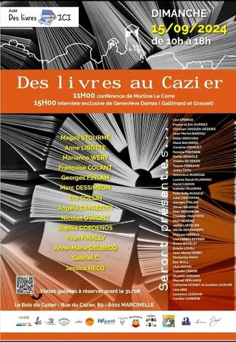 Des livres au Cazier, plus de 70 auteurs sur le site du Bois du Cazier. Genres représentés: romance, fantasy, thriller, histoire, photo, jeunesse... Geneviève Damas nous rejoindra à partir de 15h. Écrivaine chez Grasset et Gallimard. Animations et lectures diverses (Sofia Injoque Palla, Marine Le Corre, Hélène Giustiztia, la chanteuse Adolie...)