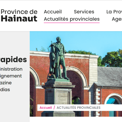 Pour une nouvelle dynamique ! Avec « Hainaut, ma Province », votre infolettre change de nom… et de look ! Cette évolution s'inscrit dans une nouvelle ligne graphique mais renvoie surtout vers un portail hainaut.be complètement repensé pour tout savoir sur la Province de Hainaut : actus, vidéos, infos officielles et formulaires pratiques.