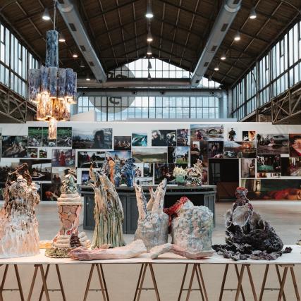 Porcelaine et faits divers, première exposition muséale en Belgique du duo, propose un parcours rétrospectif et immersif où l’art dialogue avec les pulsions humaines les plus sombres. Bachelot & Caron y convoquent mythes oubliés, banquets dévoyés, images troublantes et formes hybrides. Entre photographie, céramique et performance, leur univers fascine autant qu’il dérange. Le crime devient opéra, la cruauté prend des airs de fête, et l’humour (noir) traverse chaque scène comme une mise à nu du réel.