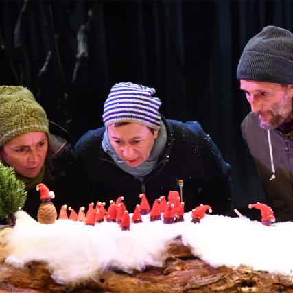 Ce théâtre d’objets, tiré du livre Contes d’hiver de Grégoire Solotareff écrit en 2001, raconte avec tendresse et dérision, des sujets graves comme l’exclusion et le racisme ordinaire que subit Casimir et sa famille. Dans un décor féérique, plongés au cœur de la forêt, trois artistes racontent cette histoire d’hospitalité, de jalousie et de solidarité, avec de petits personnages qui révèlent les faiblesses humaines.