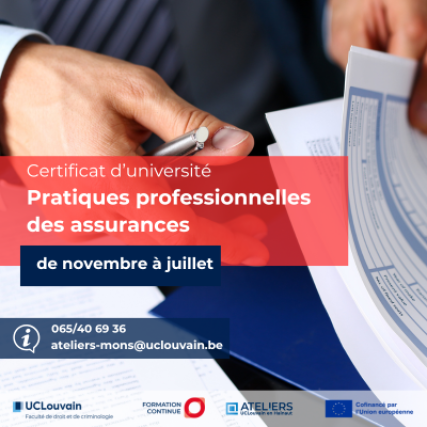 Pratiques professionnelles des assurances. Vous êtes intéressé·e par l’actualité qui touche de près le secteur des assurances ? Cette formation, qui allie analyse juridique rigoureuse et déclinaison pratique, est faite pour vous !