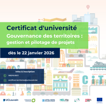 La Faculté des sciences économiques, sociales, politiques et de communication de l’UCLouvain lance, en collaboration avec la Helha, le Centre d’Etudes en Habitat Durable et le Centre d’Enseignement Supérieur de Promotion et de Formation Continuée en Brabant Wallon, une nouvelle édition du certificat d’université en « Gouvernance des territoires : gestion et pilotage de projets ».