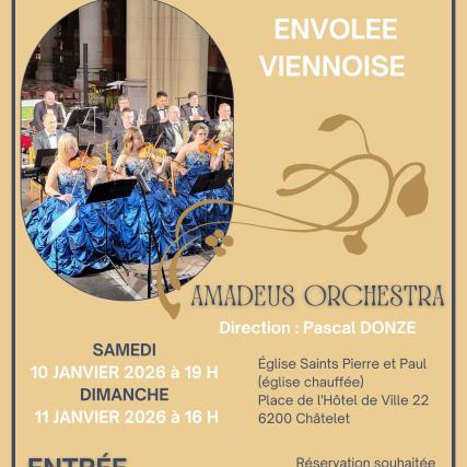 En janvier, la Ville de Châtelet organisera son traditionnel concert de l’An Neuf. Le samedi 10 janvier 2026 à 19 h et dimanche 11 janvier 2026 à 16 h, l’Amadeus Orchestra sera en concert dans l’Église des Saints Pierre et Paul de Châtelet.