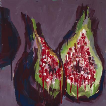 On y croise des pièces montées, des cadavres exquis, des conserves empilées dans les couloirs, des natures mortes qui rient, brillent, transpirent, débordent – loin des compositions sages et ordonnées. On pense marché, taverne, fête populaire, mais aussi vanité, excès, solitude d’après-fête. On cherche l’intrus, la miette, le ver dans la pomme.