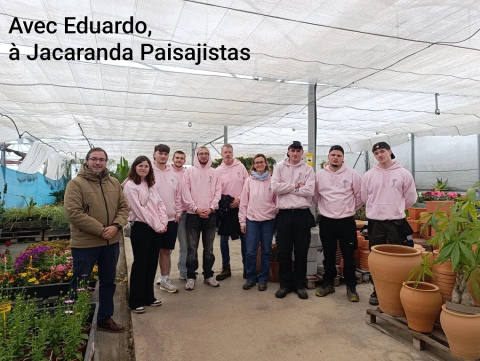 Les élèves ont été accueillis par Miguel Ángel, chef de travaux chez Licuas, Eduardo, responsable paysagiste chez Jacaranda Paisajistas, Casteller et Manolo, responsables chez Pinsapo, Juan Manuel, dirigeant de Surplant.
